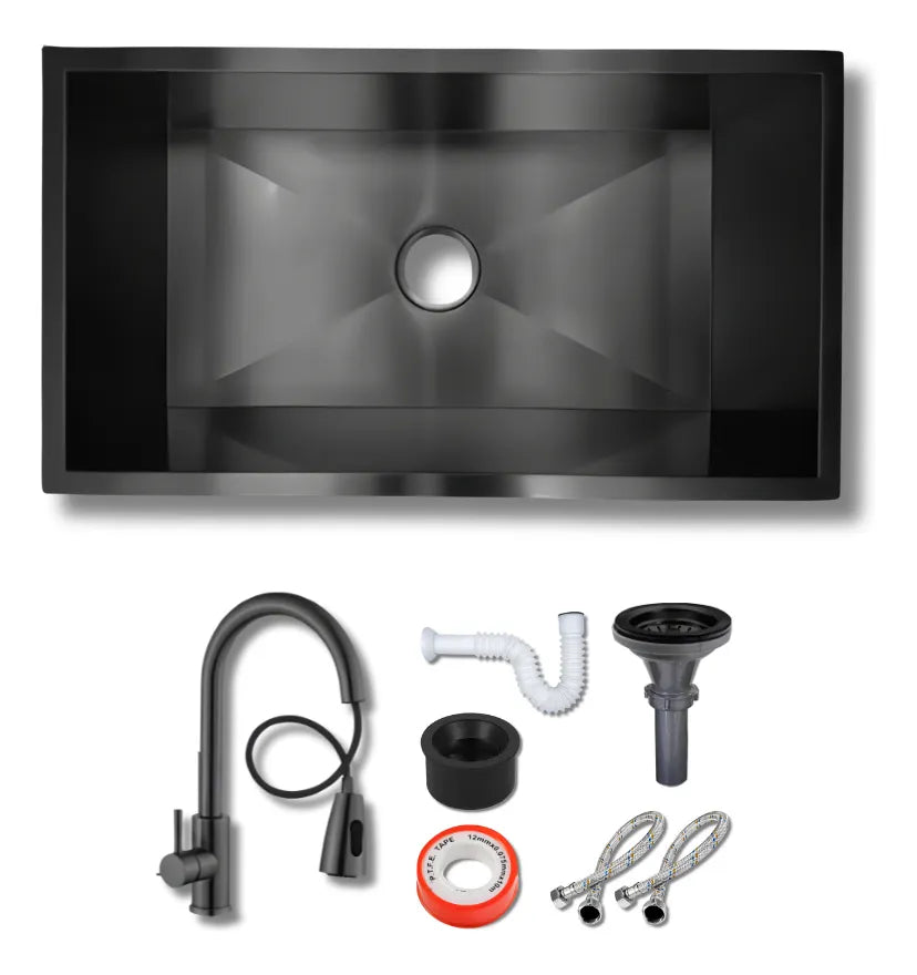 Tarja Una Tina Grande Cuadrada Acero Inoxidable Lujo Con Kit Negro